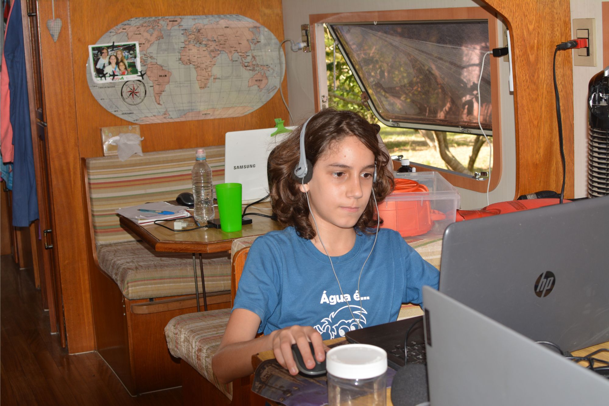 Saímos da escola e começamos a fazer homeschooling e por 3 anos estudamos em casa. Em 2018, ao partirmos para a nossa viagem, decidimos nos matricular na Clonlara para poder receber o certificado caso quiséssemos fazer uma faculdade algum dia. Com isso comecei a estudar online na Clonlara enquanto viajávamos pelo Brasil.