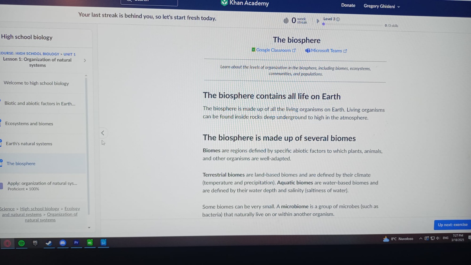 Aqui estou aprendendo sobre os organismos e sobre a biodiversidade.